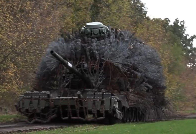 Tanque russo T-80BVM aparece com adaptações contra drones e sistema de desminagem